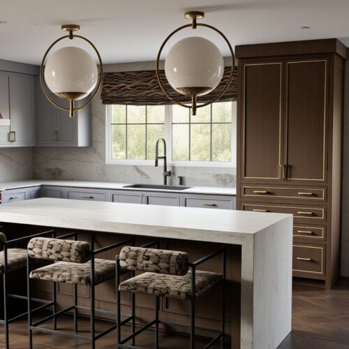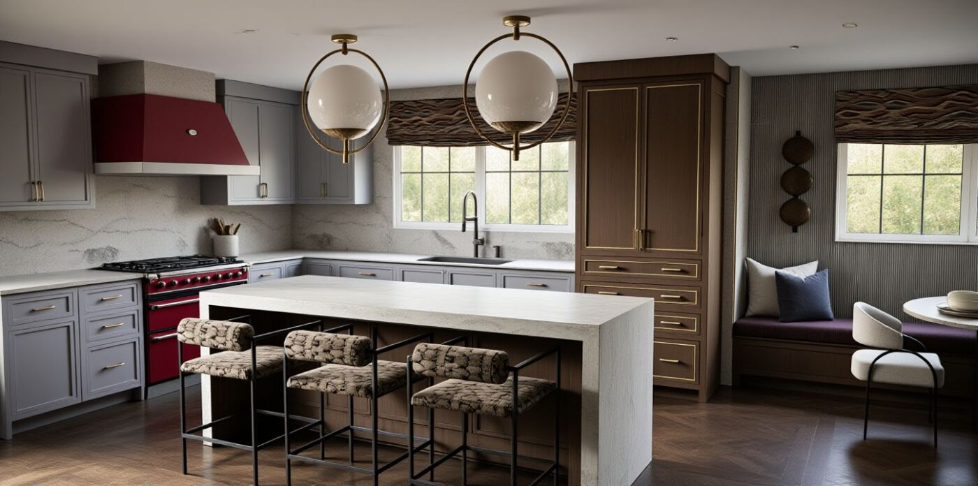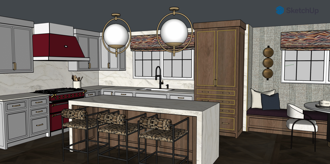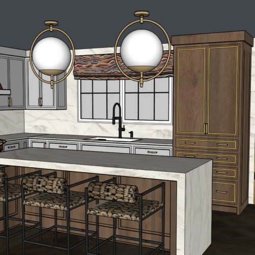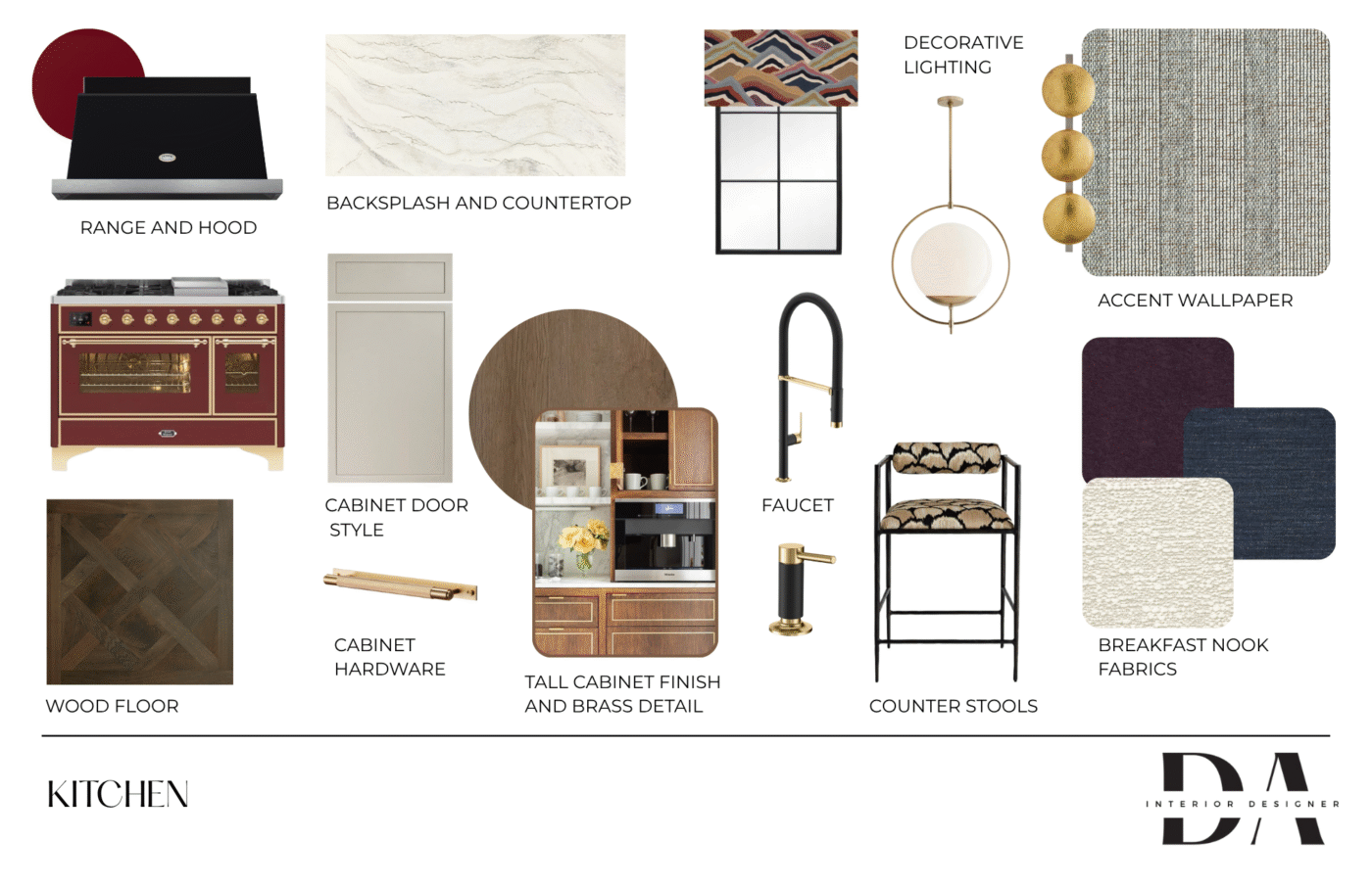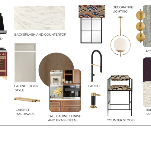 I designed a sophisticated kitchen featuring a beautiful range as the centerpiece, with jewel tones inspired by a playful window treatment fabric. The project focused on combining elegance with personality, creating a cohesive and visually striking space.