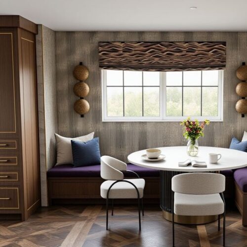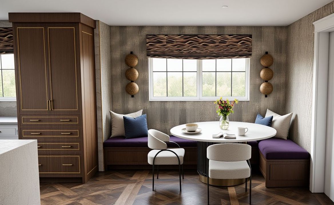 This sophisticated kitchen was inspired by a past client consultation, though the final design reflects my personal style and vision. A stunning range serves as the centerpiece, while rich jewel tones drawn from a playful window treatment fabric add personality and warmth. Every element, from concept development and material selections to spatial planning, layered lighting, and curated décor, was thoughtfully chosen to create a cohesive, visually striking space that balances elegance with livability. The project showcases how carefully considered details can combine sophistication with character, resulting in a kitchen that feels both luxurious and approachable.